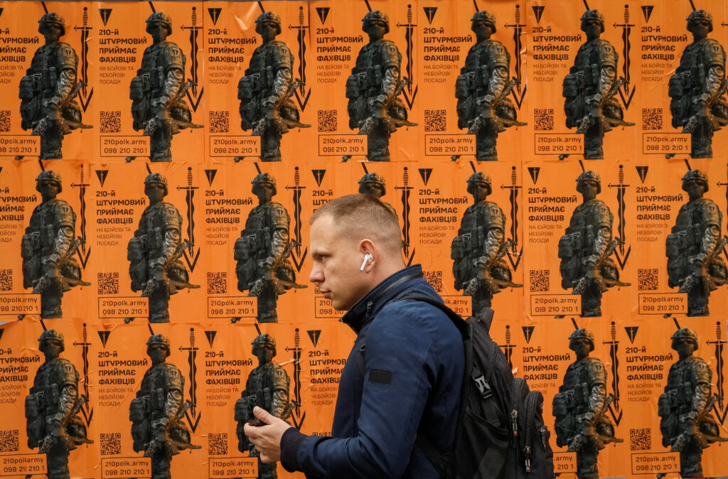 General Andrij Bilecki, bivši političar, a sada komandant Trećeg armijskog korpusa, čest je lik na plakatima za novačenje.